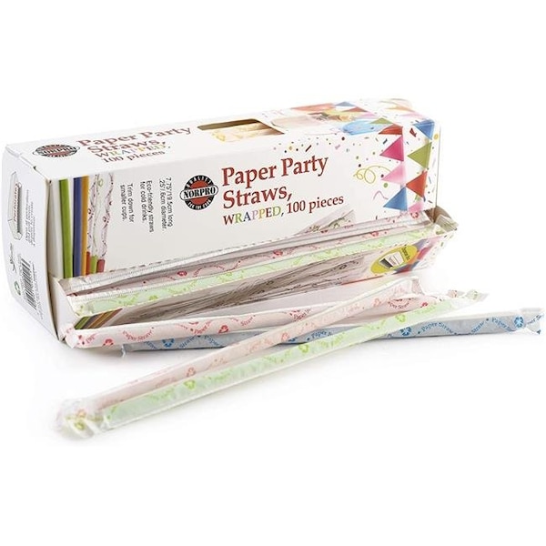 Norpro 4025 Paper Drinking Straws; Biodegradable-Assorted Colors - Pack of 100 (Discontinued)