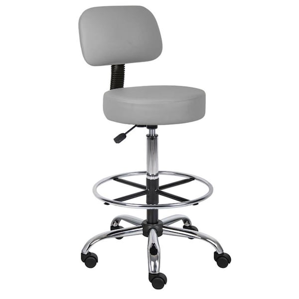 Caressoft Medical Drafting Stool with Back Cushion and Foot Ring- Grey