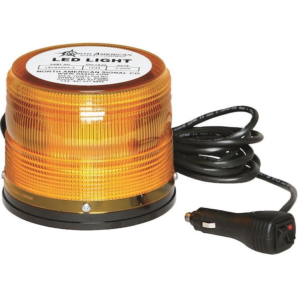 This powerful LED warning light offers a complete 360° display for maximum visibility and will last more than 70,000 hr. Polycarbonate Fresnel lens allows for maximum light amplification and features four flash patterns. Includes 75-lb. pull magnet, 15'L cord and power outlet plug with built-in on/off switch. 12/24 operating voltage. Rated 1.6A. Light measures 5-1/2"W x 4-1/2"H.