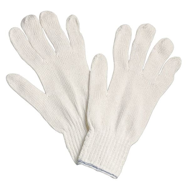 Knit Gloves, Cotton, Polyester, White, L, 1 PR