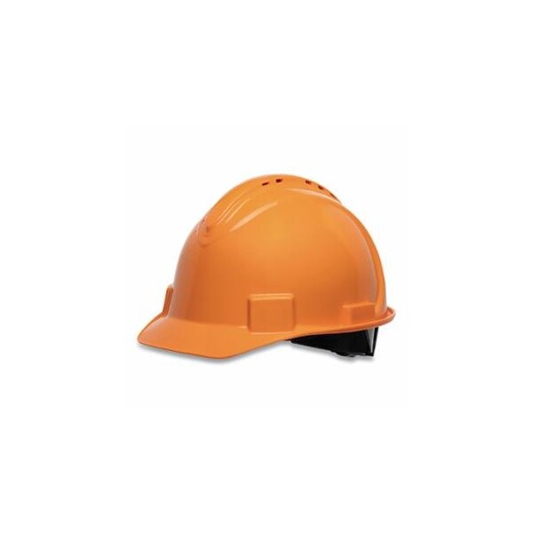 Short Brim Hard Hat, 4-point Ratchet Suspension, Vented, Orange