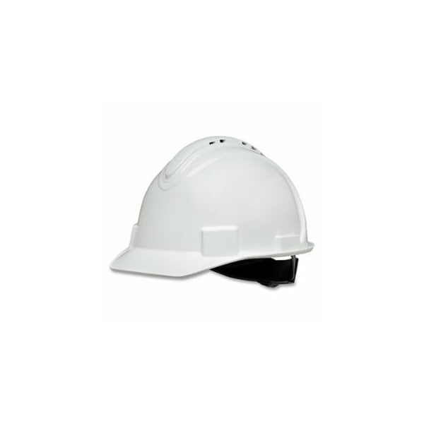 Short Brim Hard Hat, 4-point Ratchet Suspension, Vented, White