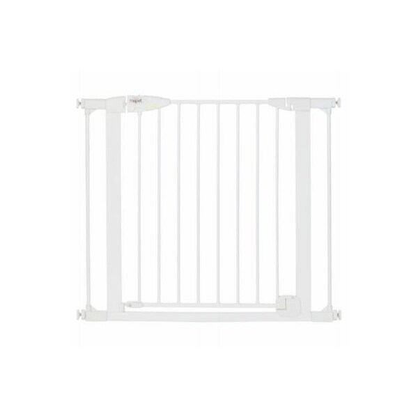 NorthStates Ultimutt Walk Thru Pet Gate with Auto Close from North States is the ultimate pet safety gate for both day and night The innovative glowinthedark feature illuminates the large easygrip handle, allowing you to see and open the gate in the dark This gate easily pressure mounts between rooms, hallways or doorways keeping your pet contained in their own space The extrawide 22 door on this gate provides plenty of room to walk through with ease The door motion is effortless the gravityfed autoclose door allows the gate to shut firmly and gently behind you For those times when you want the gate to quickly remain open, just move the door past 90 degrees and the holdopen feature will kick in The crisp white finish of this dog gate will blend seamlessly with any home decor, while its heavyduty steel construction is chewproof and built to last This gate fits openings from 2975 to 375 inches wide with two extensions included and is 30 inches high