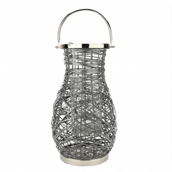 Modern Gray Decorative Woven Iron Pillar Candle Lantern with Glass Hurricane
