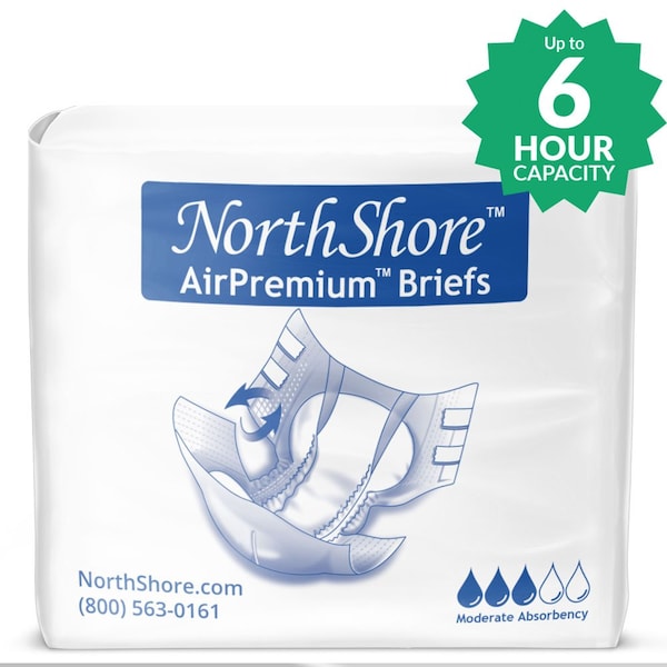Airflow Breathability to Maintain a Cool and Dry Fit. NorthShore AirPremium briefs can be used for both day and night usage. AirPremium features airflow breathability to promote skin health. Feel confident that you will be protected from leaks with tall leak guards, elastic waistband and 4 strand leg gathers.