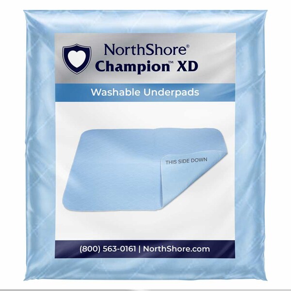 Soft, highly absorbent and durable. Champion XD is offered in sizes Large, X-Large, and 2X-Large. Available in NorthShore blue to give less indication for wetness. Wash and dryer friendly without giving that layer separation or blow out.