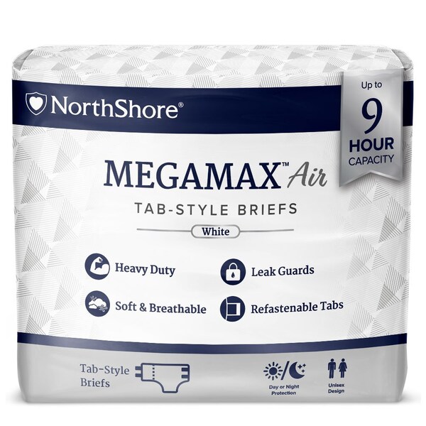MEGAMAX AIR TabStyle Briefs, White, 2XLarge, 6076, Pack, 10PK (Discontinued)