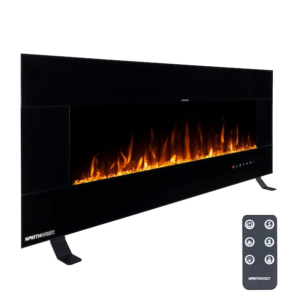 Bring the beauty and warmth of a real fireplace into your living space without any of the mess with the 50-Inch Wall Fireplace Electric with Remote Control by Northwest. This faux fireplace includes a remote control that lets you power the unit on and off, change between low (750W), high (1500W), and no heat settings, set an automatic shutoff timer from 30-minutes up to 8-hours, adjust the brightness of the orange and blue flames, or control the temperature from anywhere in the room. The versatile fireplace insert includes mounting hardware for easy wall mounted or recessed installation below your mantle or on your bedroom wall as well as removable metal feet that allow for freestanding use on your floor, making it a great addition to any space as functional room decor.
