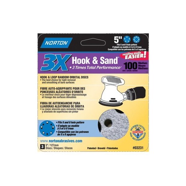 3 Pack, 5, 100 Grit, Hook Loop Random Orbital Disc, 5 8 Hole, Universal Vac Hole, Fits 5 8 Hole Vac Sanders, Patented, Ceramic Alumina Abrasive, PGraded 80320, Unique, Fiber Reinforced Backing, NonPigmented, Water Based Zinc Stearate AntiClog Open Coat, For Stripping Primers, Blending, Leveling, Finishing, Dimensioning, Sanding Of Bare Wood, Metal, Fiberglass Plastic, Primer Sealer Sanding