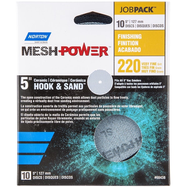 Sanding can be messy, but now you can sand virtually dust free with this Norton MeshPower Disc. Disc features a multi-functional ceramic alumina abrasive with open mesh construction that allows particles to flow freely through thousands of tiny holes to provide powerful and effective dust extraction in any application. The result is a healthier, more comfortable working environment and better quality finishing. Disc can be used by hand or with a machine.