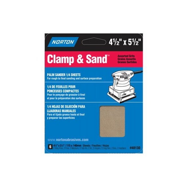 6 Pack, 412 x 512, 14 Sanding Sheets, Assorted Grit, For Clamp Sand Palm Sanders, Includes 2 Sheets Each 220 Grit Very Fine, 150180 Grit Fine, 100120 Grit Medium, For General Purpose, Hand Or Machine Sanding Wood, Metal, Plastic Fiberglass, Removing Old Paint