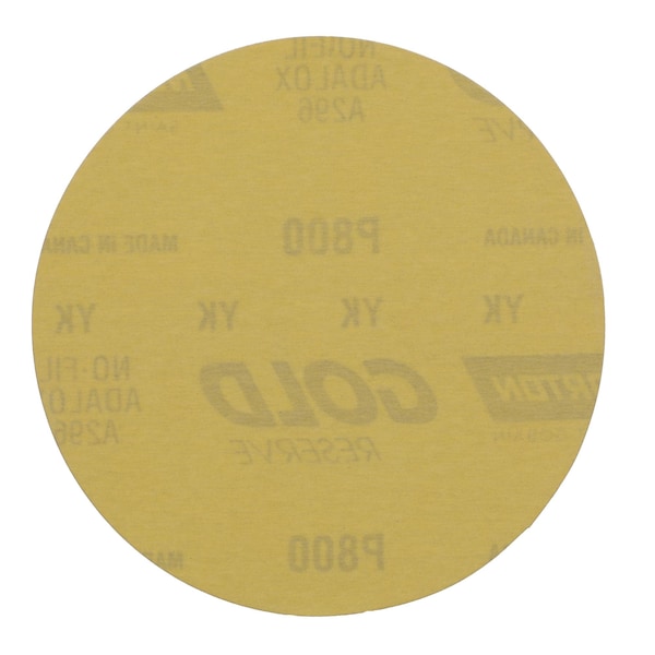 Disc, Abrasive Type Coated, Abrasive Material Aluminum Oxide, Backing Material Paper, Backing Weight C, Coating Coverage Open, Grade Ultra Fine, Grit P800, Overall Diameter 5 in, Series A296, Resistance Properties Tear, Number of Vacuum Holes Non-Vacuum, Color Yellow, Package Quantity 100