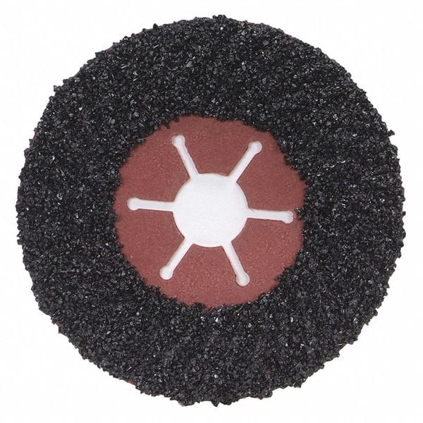 Fiber Disc, Abrasive Type Coated, Abrasive Material Silicon Carbide, Backing Material Fiber, Backing Weight OTH, Grit 16, Overall Diameter 4 1/2 in, Series FASTCUT SC, Maximum Operating Speed 11,000 RPM, Connector Size 7/8 in, Connector Type Unthreaded Hole, Color Black, Features Rigid Fiber Backing, Grade Extra Coarse