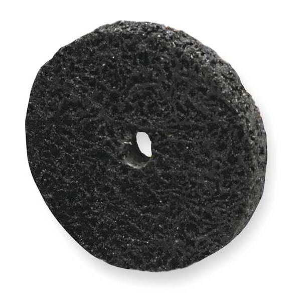 Surface-Conditioning Disc, Abrasive Material Silicon Carbide, Grade Extra Coarse, Overall Diameter 4 in, Series Rapid Strip, Maximum Operating Speed 8,000 RPM, Connector Size 1/2 in, Connector Type Unthreaded Hole, Abrasive Type Non-Woven, Backing Material Fiber, Backing Weight Y, Color Black, Grit 24-36, Resistance Properties Smear
