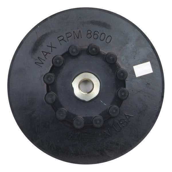 Fiber Disc Backup Pad, Abrasive Mount Type Quick Change, Abrasive Mounting Quick Change System Not Applicable, Connector Size 5/8 In.-11, Connector Type Threaded Hole, Backup Pad Shape Round, Device Material Rubber, Density Medium, Maximum Operating Speed 8,600 RPM, Number of Vacuum Holes Non-Vacuum, Color Black, Overall Length Not Applicable, Overall Width 7 in, Overall Diameter 7 in, Overall Thickness 1/2 in, Product Type Disc Backup Pad