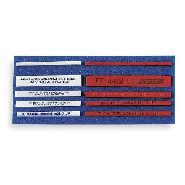 Abrasive Sharpening File Kit, File Shape Knife Blade, Round, Square, Triangular, Grit Various, Number of Pieces 10, Abrasive Material Aluminum Oxide, Hard Arkansas, Included Files Fine India, Ultra Fine Hard Arkansas, Trade Number FF114, FF14, FF214, FF44, FF724, HF113, HF13, HF43, HF813, HF873, Grade Ultra Fine