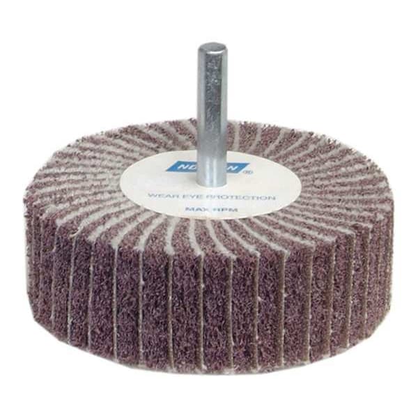 Interleaf Flap Wheel, Abrasive Material Aluminum Oxide, Abrasive Type Coated/Non-Woven, Grit 120, Series Bear-Tex, Flap Width 1 in, Maximum Operating Speed 12,000 RPM, Shank Size 1/4 in, Overall Diameter 2 in, Grade Medium, Shank Type Straight, Package Quantity 10