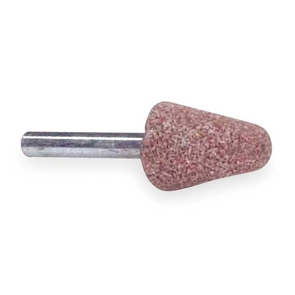 Vitrified Mounted Point, Abrasive Material Aluminum Oxide, Bond Type Vitrified, Overall Dia. 3/4 in, Overall Thickness 1 1/8 in, Shank Dia. 1/4 in, Grit 36, Shape A5, Primary Material Application Carbon Steel, Shank Length 1 1/2 in, Specification 38A CRS, Operating Speed - Maximum 38,550 RPM, Series Gemini 38A, Grade Coarse, Compatible Tool Type Die Grinder, Flexible Shaft Grinder, Straight Grinder, Pencil Grinder, Drills