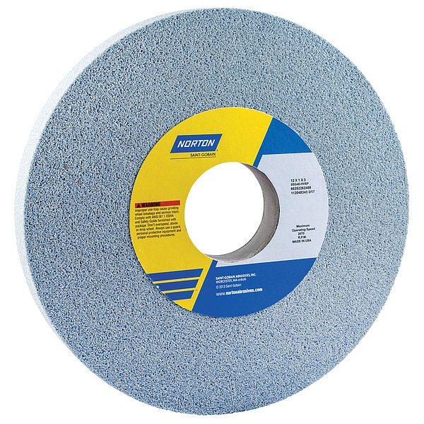 Ceramic, Connector Size 3 in, Connector Type Unthreaded Hole, Grit 60, Overall Diameter 12 in, Overall Thickness 1 in, Compatible Tool Type Cylindrical Grinder, Surface Grinder, Tool and Cutter Grinder, Primary Material Application Cast Iron, Nickel Alloy, Stainless Steel, Steel, Titanium, Specification 5SG60-GVSP, Wheel Hardness G, Wheel Type Type 1, Maximum Operating Speed 2,070 RPM, Series 5SG, Grade Medium, Bond Type Vitrified, Color Blue, Item Straight Grinding Wheel