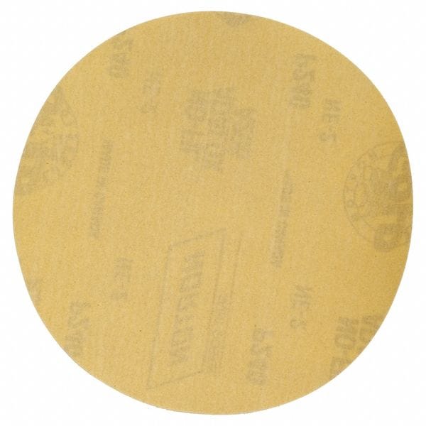 Hook-and-Loop Sanding Disc, Abrasive Type Coated, Abrasive Material Aluminum Oxide, Backing Material Paper, Backing Weight C, Coating Coverage Open, Grade Ultra Fine, Grit P800, Overall Diameter 6 in, Series A296, Resistance Properties Tear, Number of Vacuum Holes Non-Vacuum, Color Gold, Package Quantity 50