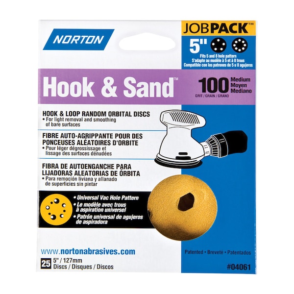 Norton Hook & Sand 5 in. Aluminum Oxide Hook and Loop A290 Sanding Disc 100 Grit Medium 25 pk