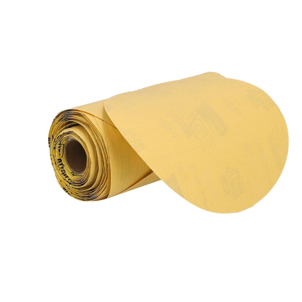 Sanding Disc, Abrasive Type Coated, Abrasive Material Aluminum Oxide, Backing Material Paper, Backing Weight C, Coating Coverage Open, Grit P400, Overall Diameter 6 in, Product Type PSA Disc Roll, Series A296, Resistance Properties Tear, Number of Vacuum Holes Non-Vacuum, Color Gold, Grade Super Fine