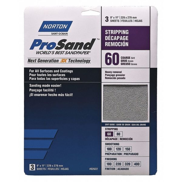 Sandpaper Sheet, Med, 60 Grit, PK3
