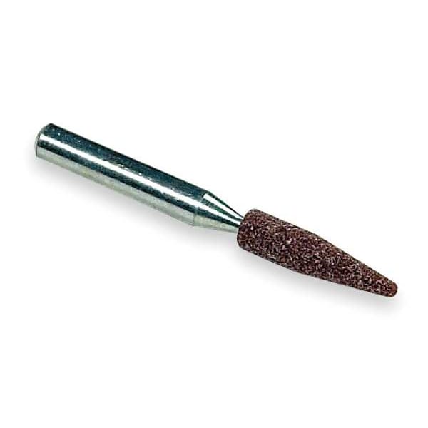 Vitrified Mounted Point, Abrasive Material Aluminum Oxide, Bond Type Vitrified, Overall Dia. 1/4 in, Overall Thickness 1 1/16 in, Shank Dia. 1/4 in, Grit 60, Shape A15, Primary Material Application Carbon Steel, Shank Length 1 1/2 in, Specification 38A M, Operating Speed - Maximum 50,510 RPM, Series Gemini 38A, Grade Medium, Compatible Tool Type Die Grinder, Flexible Shaft Grinder, Straight Grinder, Pencil Grinder, Drills