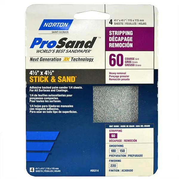 4-1/2" x 4-1/2" ProSand Stick & Sand Sanding Sheet 60-Grit, PK 4