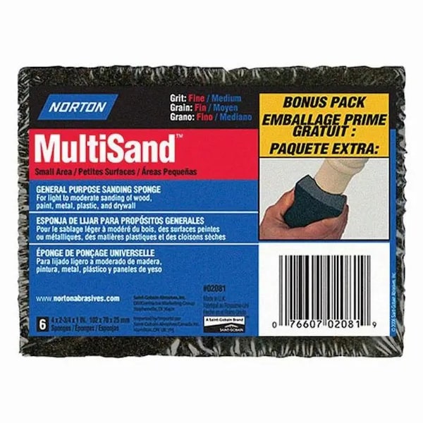 4" x 2-3/4" MultiSand Double Sided Sanding Sponge Fine/Medium, PK 6