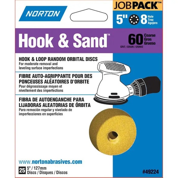5" Hook & Sand 8-Hole Sanding Disc, P60-Grit, PK 25