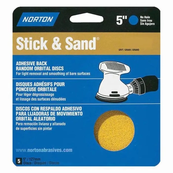 5" Stick & Sand No-Hole PSA Sanding Disc 120-Grit, PK 5