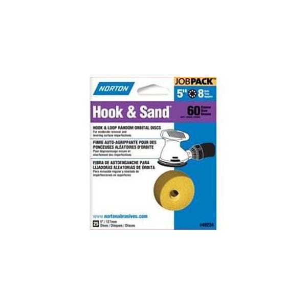 Sanding Disc, 5 in Dia, Coated, P60 Grit, Coarse, Aluminum Oxide Abrasive, Paper Backing