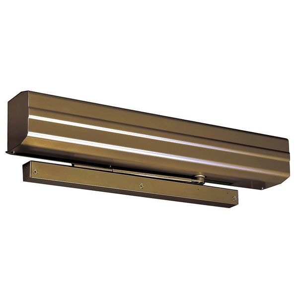 Electric, Powered Door Operator, Heavy Duty Closer Performance, Hold Open, Door Handing Non-Handed, Arm Type Slide Track, Hinge (Pull) Side, Mounting Style Pull Side, Housing Length 29 In., Housing Width 4-5/8 In., Housing Height 5-1/4 In., Dark Bronze Finish, Max. Door Opening 180 Degrees , Exterior Door Width 48 In., Interior Door Width 54 In., Powered By 120 VAC, Projection from Wall 4-5/8 In., Spring Size Adjustable 1 to 6, Color Dark Bronze, Arm Material Aluminum/Steel