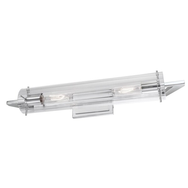 Linear Sconce With Ribbed, Clear Glass Cylinder, Complimented By 2 Sleek Angular Arms