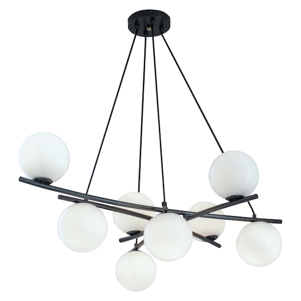 The Opal Glass Globes Of The Perch Chandelier Curiously Balance On Exquisitely Finished Acid Dip Black Or Satin Brass Arms That Resemble Tree Branches. The Perch Can Accommodate Both Standard And Led Candelabra Bulbs And Has A Companion Wall Sconce.