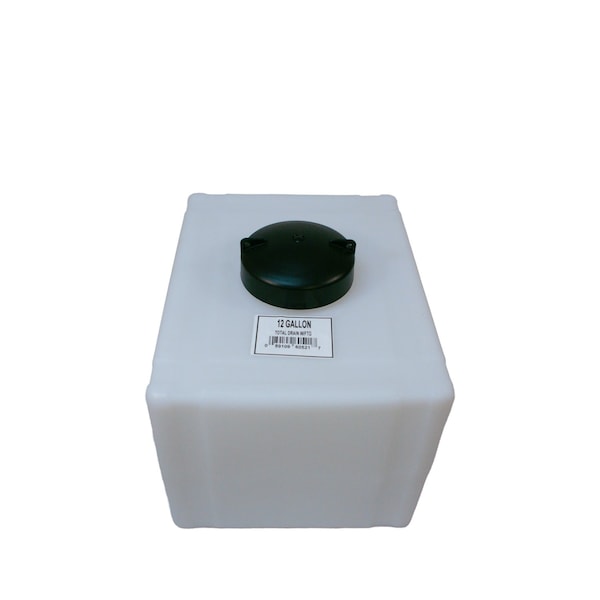 Utility Tank, Drain Connection Type Bulkhead Fitting, Drain Opening Diameter 3/4 in, Fill Opening Diameter 5 in, Liquid Storage Capacity 12 gal, Overall Depth 18 in, Overall Diameter Not Applicable, Overall Height 15 in, Overall Width 14 in, Tank Opening Type Closed Top, Color White, Fill Cap Diameter 5 in, Resistant To Chemical, Storage Application Hazardous Liquids