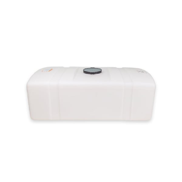 Utility Tank, Drain Connection Type Bulkhead Fitting, Drain Opening Diameter 1 in, Fill Opening Diameter 5 in, Liquid Storage Capacity 52 gal, Overall Depth 43 in, Overall Diameter Not Applicable, Overall Height 15 in, Overall Width 24 in, Tank Opening Type Closed Top, Color White, Fill Cap Diameter 5 in, Shape Rectangular