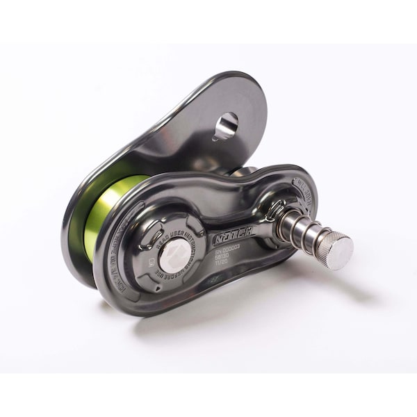 This is the must have rigging and impact block for tree care. The Notch Rigging Block accepts up to a 3/4 in. rigging line and features rounded edges making it very rope friendly. The spring action lock makes for a secure connection between the side plates. 30 kN WLL / 150 kN MBS. Hot forged aluminum side plates with rope friendly rounded cheeks. Precision CNC machined aluminum sheaves with wide bend radii. Low profile, secure, easy-to-open two stage captive spring pin lock with a high wall, a full diameter and improved anchor sling protection. The wide concave upper sheave accepts 1.125 in. anchor slings while flared sideplates reduce twisting in complex rigging scenarios.