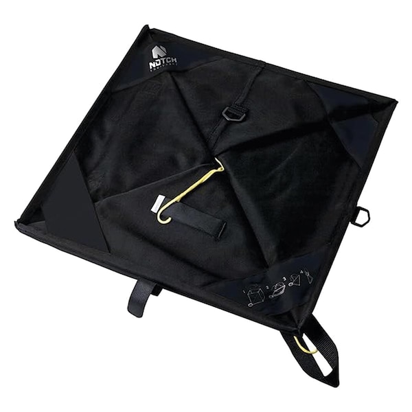 Just as effective at dispersing line during the throw as it is at receiving line being retrieved, the Notch Cube Fold & Hold Deluxe folding throwline cube can be used on the ground or in the tree with equal effectiveness. Storage features include one large exterior and two small interior pockets for holding throw weights plus an interior Velcro strap and D-ring for quick line-end recovery. The material on the bottom of the cube stretches preventing damage to the cube when packed tightly. Made with approval from Heinrich Haeussler.