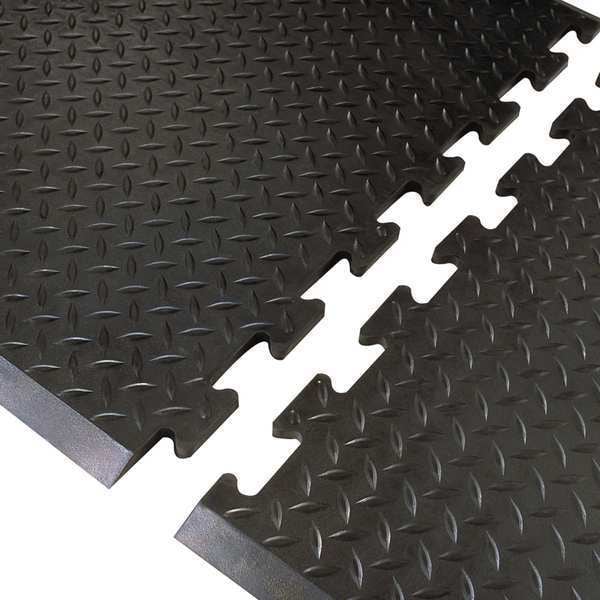 Interlocking Antifatigue Mat Tile, Anti-Slip Surface Yes, Anti-Slip Backing Yes, Number of Tiles 1, Washdown Safe Yes, X-Ray Detectable No, Width 31 in, Welding Safe No, Thermally Insulating Yes, USDA Certified No, Thickness 1/2 in, Surface Texture Raised Pattern, Surface Material Rubber, Series 545 Diamond Top Interlock(TM), Surface Design Diamond Plate, Number of Interlocking Sides 2, Reversible No, Resistance Properties Slip-Resistant, Wear-Resistant, Number of Border Stripes 0