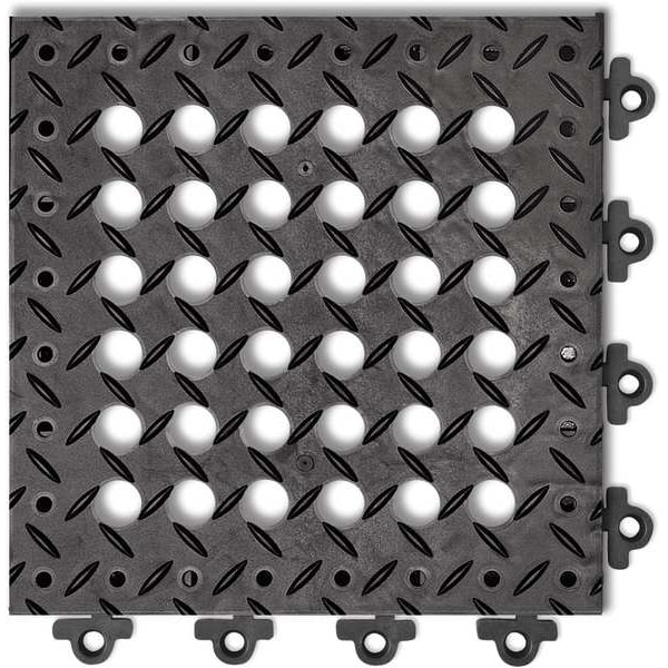 Interlocking Drainage Mat Tile, Anti-Slip Surface Yes, Anti-Slip Backing Yes, Number of Tiles 1, Washdown Safe Yes, X-Ray Detectable No, Width 12 in, Welding Safe No, Thermally Insulating No, USDA Certified No, Thickness 1 in, Surface Texture Raised Pattern, Surface Material PVC, Series 620 Diamond Flex-Lok(TM), Surface Design Diamond Plate, Number of Interlocking Sides 4, Reversible No, Resistance Properties Chemical-Resistant, Oil-Resistant, Slip-Resistant, Wear-Resistant