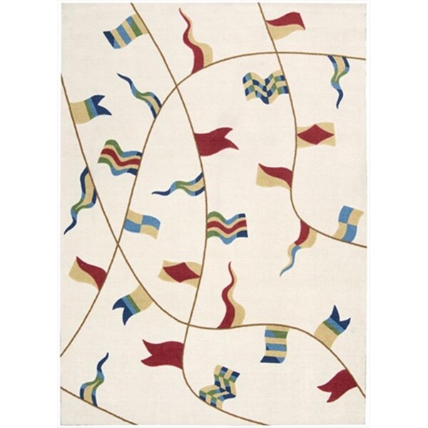 Style Description :Celebratory flags in bright shades of red, white, blue, green, sand and turquoise whirl and twirl in a refreshing summer breeze against an enticing ivory background. This cheerful rug proves that summer afternoons can last all year long.
