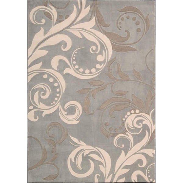 These beautiful handcrafted rugs feature transitional and contemporary patterns in a rich color palette. Select designs have exquisite detail carved deeply into the dense cut-and-loop pile for dramatic texture and striking contrast. This collection is simply beautiful to look at and enduring in quality. Style Description A luminous silvery-blue background gets an infusion of energy from an oversized scrolling leaf and vine design rendered in super chic shades of white and slate. This contemporary rug’s exquisitely hand-carved details are sure to make you step out of your shoes. Features -Style - CON09 -Color - Silver -Size - 3 ft. 6 in. x 5 ft. 6 in. -Shape - Rectangle -Collection - Contemporary/Botanical/Transitional/Tones & Textures -Item Weight - 15 lbs. -Pile Height - 0.5 in. -Country - China -Material - 100% Polyester -Rug Type - Handmade Rug