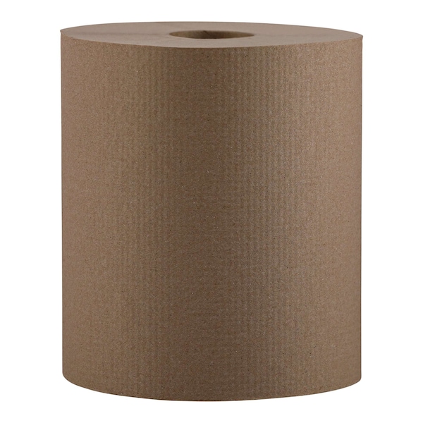 Nova Natural Hardwound Towel Kraft is a 1-ply, durable paper towel designed for use in high-traffic areas such as busy washrooms, kitchens, industrial, and commercial spaces. Made from hardwound kraft paper, it offers reliable absorbency and strength to handle water, spills, and cleaning agents efficiently. The single towel pack format, available in a pack of 6, is compatible with dispensers, helping reduce labor by minimizing run-outs and restocking needs. This economical towel provides a sanitary hand drying and cleaning solution with cost-effective performance and soaking power.