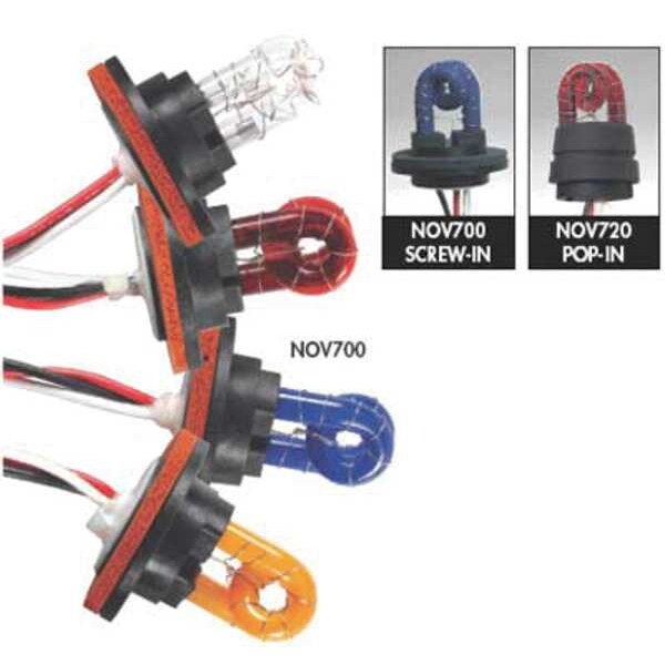 Strobe Head, Color Red, For Use With Mfr. No. NOV249, NOV449, NOV469, NOV669,NVS10, NOV489, Watts 40 to 60, Housing Material Polycarbonate, Lens Material Polycarbonate, Mounting Pop-In Inside 1 in Hole in Headlight, Taillight or Directional Signal Housing, Includes AMP Connector, Built-In Gasket