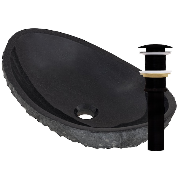 Absolute Natural Granite Slipper Vessel Sink and Matte Black Umbrella Drain