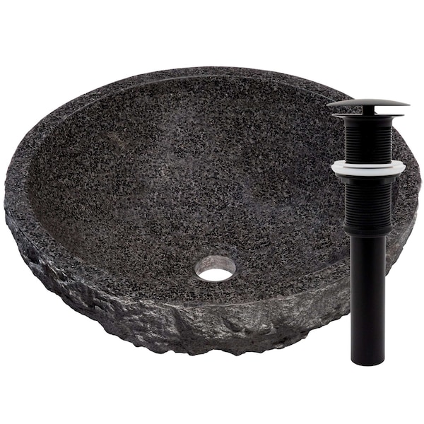 Absolute Natural Granite Vessel Sink with Matte Black Umbrella Drain