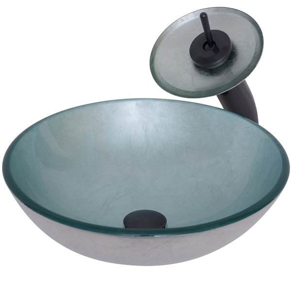 Refresh and harmonize your bath with Novatto's stunning silver glass vessel and matching oil rubbed bronze waterfall faucet. Novatto uses advanced technology, including computerized glass processing and Italian furnaces, to produce glass sinks of unmatched structural integrity. The Argento vessel set is a great way to harmonize the decor by unifying the color and textural design of your bathroom. The matching faucet disc directs the water flow into a graceful waterfall. When a bath demands superior design and quality, Novatto's glass vessels add that touch. Each glass sink and faucet features its own beauty of color, structural character and texture, adding a sense of purity, elegance and distinctive look to any design.