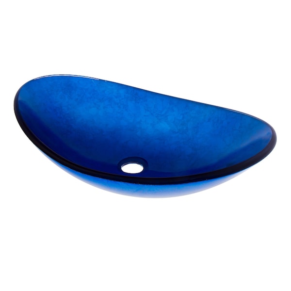This oval blue glass vessel is one of Novatto's finest. Constructed of high tempered glass in a unique slipper shape, this vessel has a blue foil painted bottom. Novatto uses advanced technology to produce beautiful glass vessel sinks with unmatched structural integrity and longevity. Constructed of thick 1/2 inch clear high tempered glass, this blue vessel sink will add a punch of cool blue color to your decor. Tempered glass cannot be compared to everyday synthetic porcelain and ceramics. Internal testing has found these vessels to be very durable and forgiving. Made with the highest standards of quality and creative design, Novatto sinks add art and function to any bath or powder room.